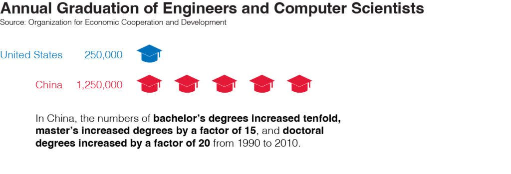 and computer scientists annually—five times the U.S. total of 250,000. Over just two